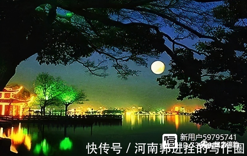 而今天我是站在家乡的月光下,心情不同感觉也不同。平西湖的月不是孤独,而是静谧。我周围有一群文朋诗友,而月里嫦娥的周围也有不少陪伴者。宫中家里热闹非凡:仙子在练功,吴刚在酿酒,蟾蜍在装饰琼楼,玉兔在研制新药。空中,仙鹤偶鸣,翔鸟时过,鸣雁北去,乌鹊南飞。地上,飞茧闪闪,蟋蟀唧唧。沙岛上滩浅沙细,水暖风轻,一阵笑声传来,平西湖也笑了,笑得湖光闪闪。不知谁把捉来的鱼儿放进了火里,只听哔哔啪啪一阵,沙岛上就飘起了诱人的香味……